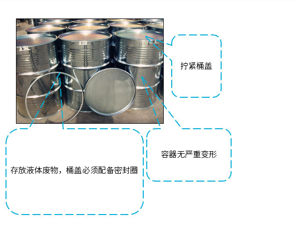 大開口桶:可存儲體積較小的固體廢物 ,液體廢料(閃點 > 65℃);粘稠的廢物需配置至少同等尺寸的內稱袋。